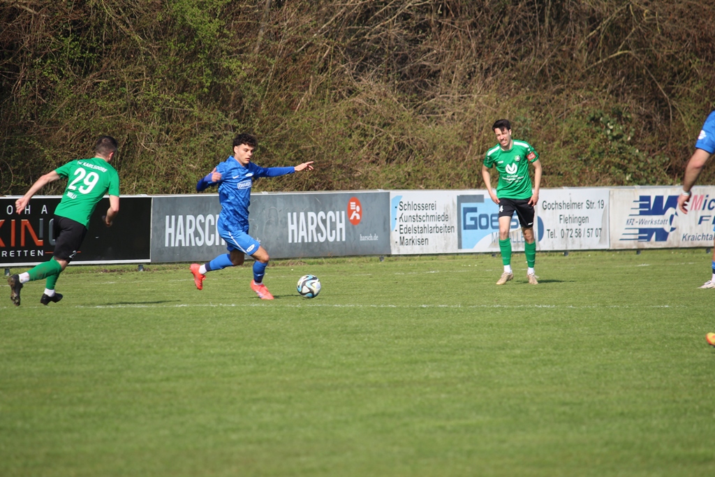Die erste Halbzeit endete ohne ein zählbares Ereignis für beide Mannschaften. Für den Führungstreffer des FC Germania Karlsdorf zeichnete Philipp Reineck verantwortlich (50.). In der 62. Minute brachte Ardwan Naief den Ball im Netz der Karlsdorfer unter. Dank eines Treffers von Ali Yurdakul in der Schlussphase (87.) gelang es den Flehinger Kicker, die Führung einzufahren. Kris Georgiev nahm mit der Einwechslung von Marvin Bühler das Tempo raus, Meric Metin verließ den Platz (80.). Unter dem Strich verbuchte der FC Flehingen gegen die Germanen einen 2:1-Sieg.