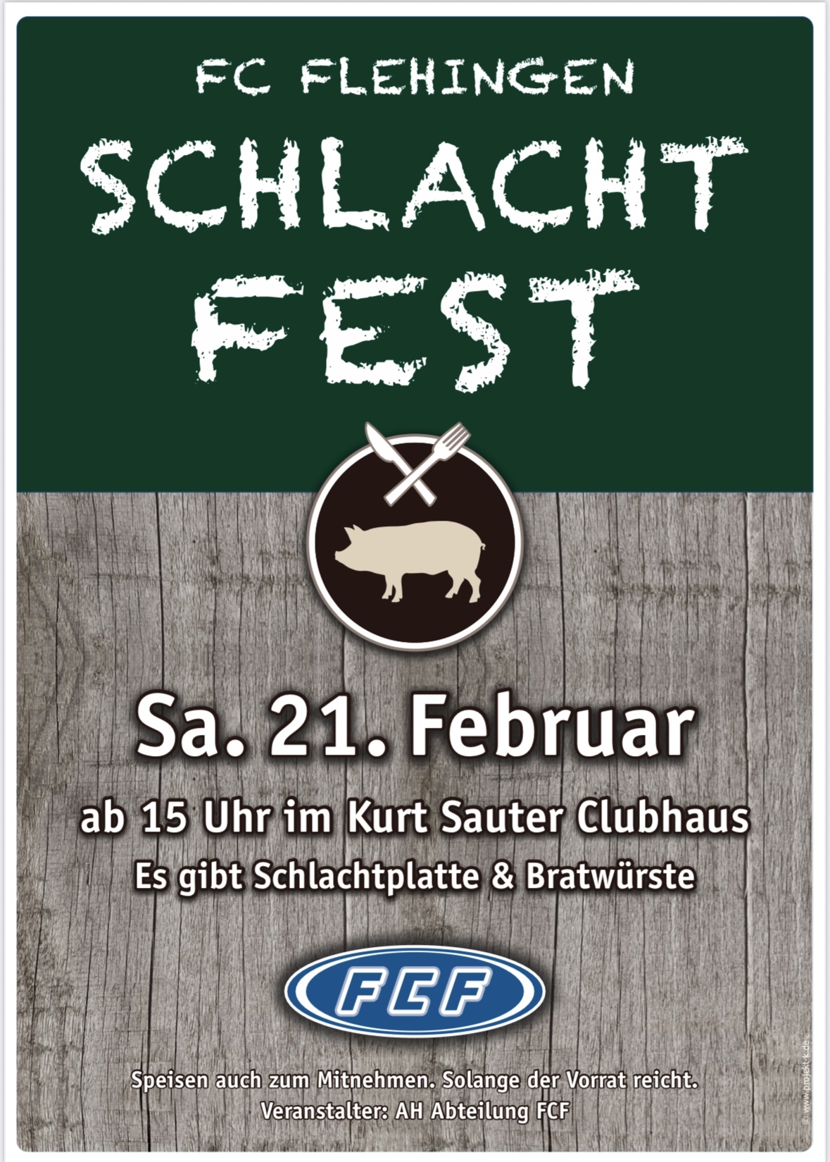 Am Samstag, den 21. Februar, lädt die AH des FC Flehingen herzlich zu ihrem traditionellen Schlachtfest ein!